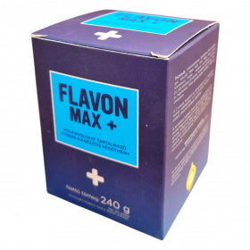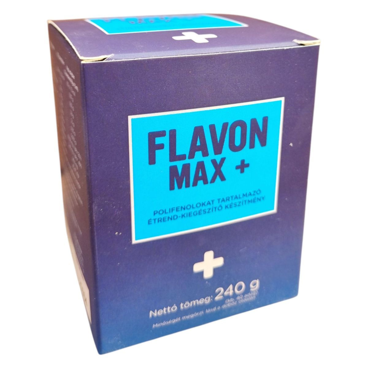 A Flavon Max+ egy polifenolokat tartalmazó étrend-kiegészítő készítmény, amely különböző gyümölcsök lékoncentrátumait tartalmazza, mint például gránátalma, fekete bodzabogyó és kékszőlő. A termék C- és E-vitamin tartalma hozzájárulhat az immunrendszer és az idegrendszer normál működéséhez, valamint a sejtek oxidatív stresszel szembeni védelméhez. A Panax ginseng adaptogén hatása miatt a termék fogyasztásában 6 hét után szünetet kell tartani, és magas vérnyomás esetén nem javasolt. A termék tartósítószert nem tartalmaz, és OÉTI által értékelt és szakvéleménnyel ellátott.