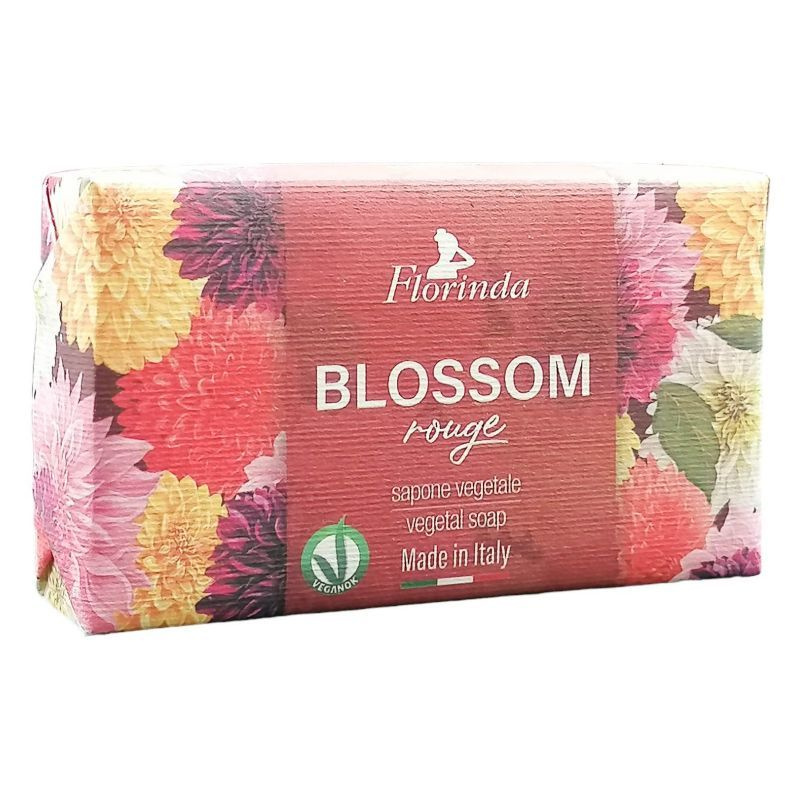 Blossom rouge 200g gyümölcsös szappan, illatjegyét a málna és a ribizli alkotják, szívjegyét fehér virágok és a cseresznye képezik, alapjegye a pézsma.