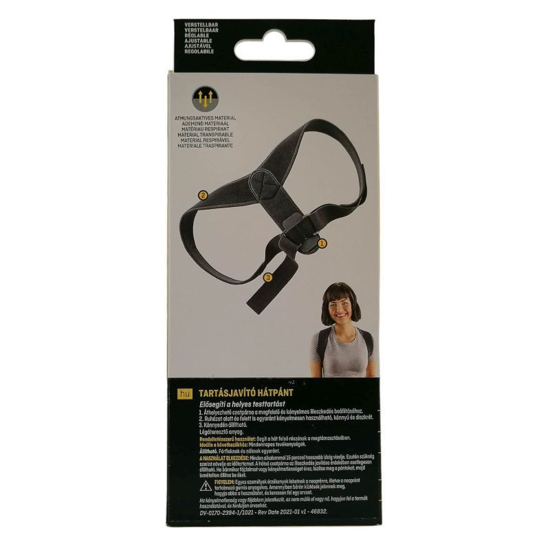 Mérnökökből és orvosi szakemberekből álló szakértői csoportunk támogatásával tervezve. Rendeltetésszerű használat: Segít a hát felső részének a megtámasztásában. Férfiaknak és nőknek egyaránt. Ideális a következőkhöz: Mindennapos tevékenységek. Áthelyezhető csatpárna a megfelelő és kényelmes illeszkedés beállításához. Ruházat alatt és felett is egyaránt kényelmesen használható, könnyű és diszkrét. Könnyedén állítható. Légáteresztő és könnyű anyagok. Méret: Állítható.