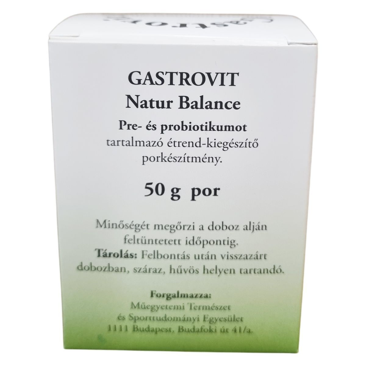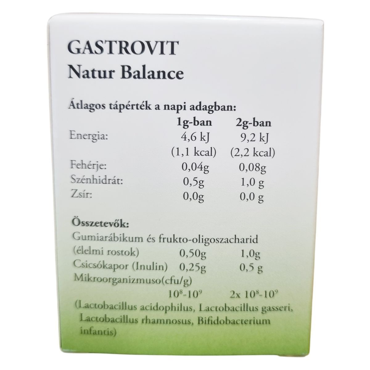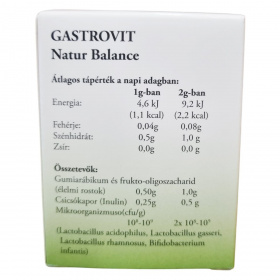 A Gastrovit Natur Balance élelmi rostokat, inulint és élőflórás probiotikumokat tartalmazó étrend-kiegészítő porkészítmény. Hozzájárulhat a bélflóra egyensúlyához. Kiszerelés: 50 g por. Előállítja: Premium Product Kft.