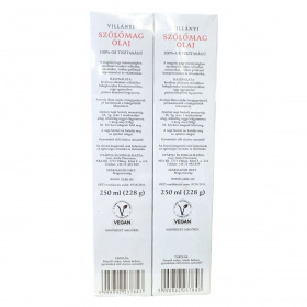 A Villányi Szőlőmag Olaj 100%-os tisztaságú, hidegen sajtolt olaj, ami a tökéletesen érett kék szőlőmagjából készül, és természetes, vegán E étrend-kiegészítőnek minősül.