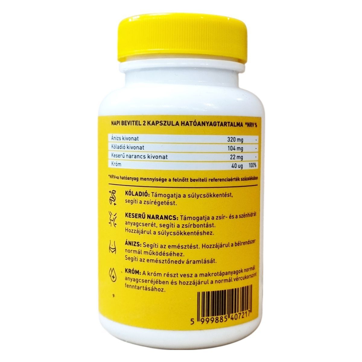 A kóladió kivonat támogatja a súlycsökkentést és segítheti a zsírégetést. A keserű narancs kivonat hozzájárulhat a zsír- és szénhidrátanyagcsere támogatásához, és segítheti a zsírbontást, ezáltal hozzájárulhat a súlycsökkenéshez. Az ánizs elősegítheti az emésztést, támogathatja a bélrendszer normál működését, valamint az emésztőnedv áramlását. A króm részt veszhet a makrotápanyagok normál anyagcseréjében, és hozzájárulhat a normál vércukorszint fenntartásához.