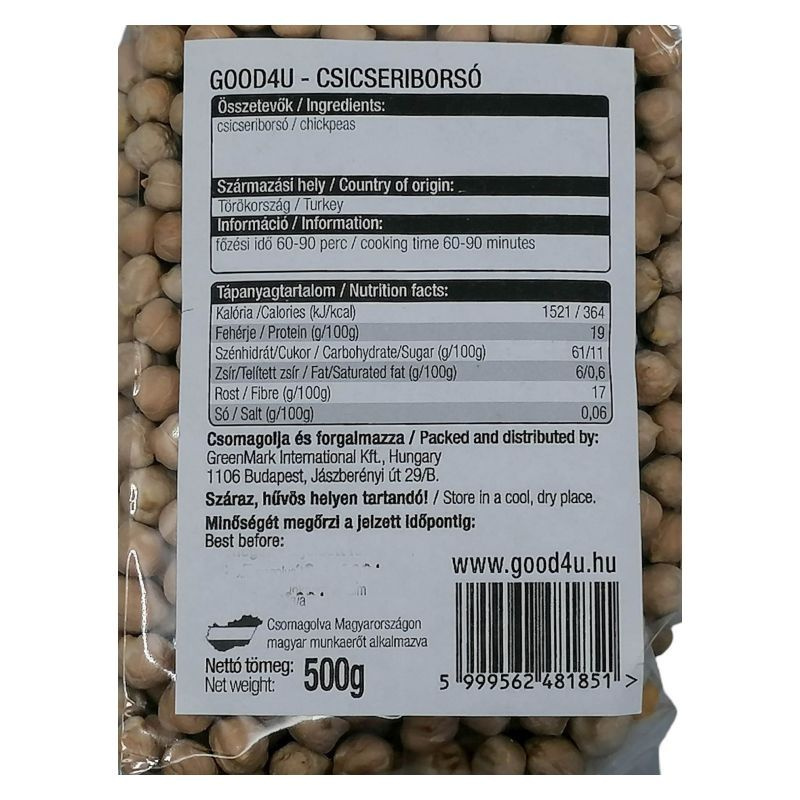 Rendszeres fogyasztása esetén elérhetjük, hogy vér koleszterinszintünk csökkenjen, így csökkenhet a szív-, és érrendszeri megbetegedések kialakulása is. Alacsony zsír- és magas rosttartalma kedvezően hat a fogyókúrázókra. A növény tartalmaz karotint, valamint E-vitamint is. Ásványi anyagok: kálcium, vas, kálium, nátrium, foszfor, magnézium Vitaminok: B1, B2, B3, B6, C, E Jótékony hatása: vér koleszterinszint csökkentés, székrekedés megelőzése Felhasználása: A humusz fő alapanyaga. Levesek, főzelékek készíthetők belőle. 8-10 óra áztatást igényel.