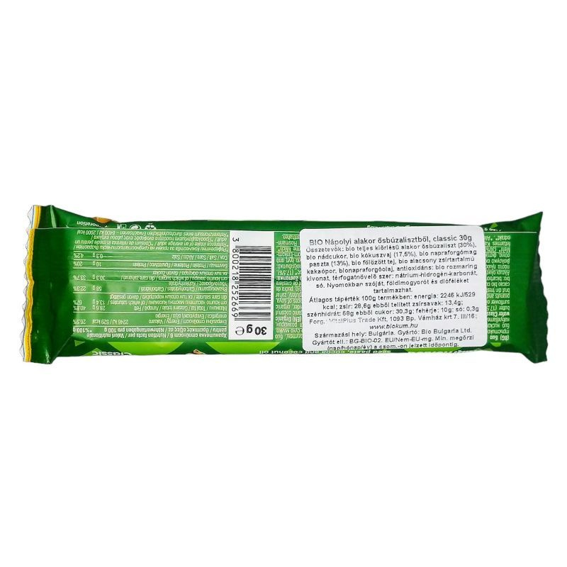 A ropogósra sült ostya teljes kiőrlésű ősbúzalisztből készül, ami természetesen alacsony gluténtartalommal rendelkezik, és könnyen emészthető.