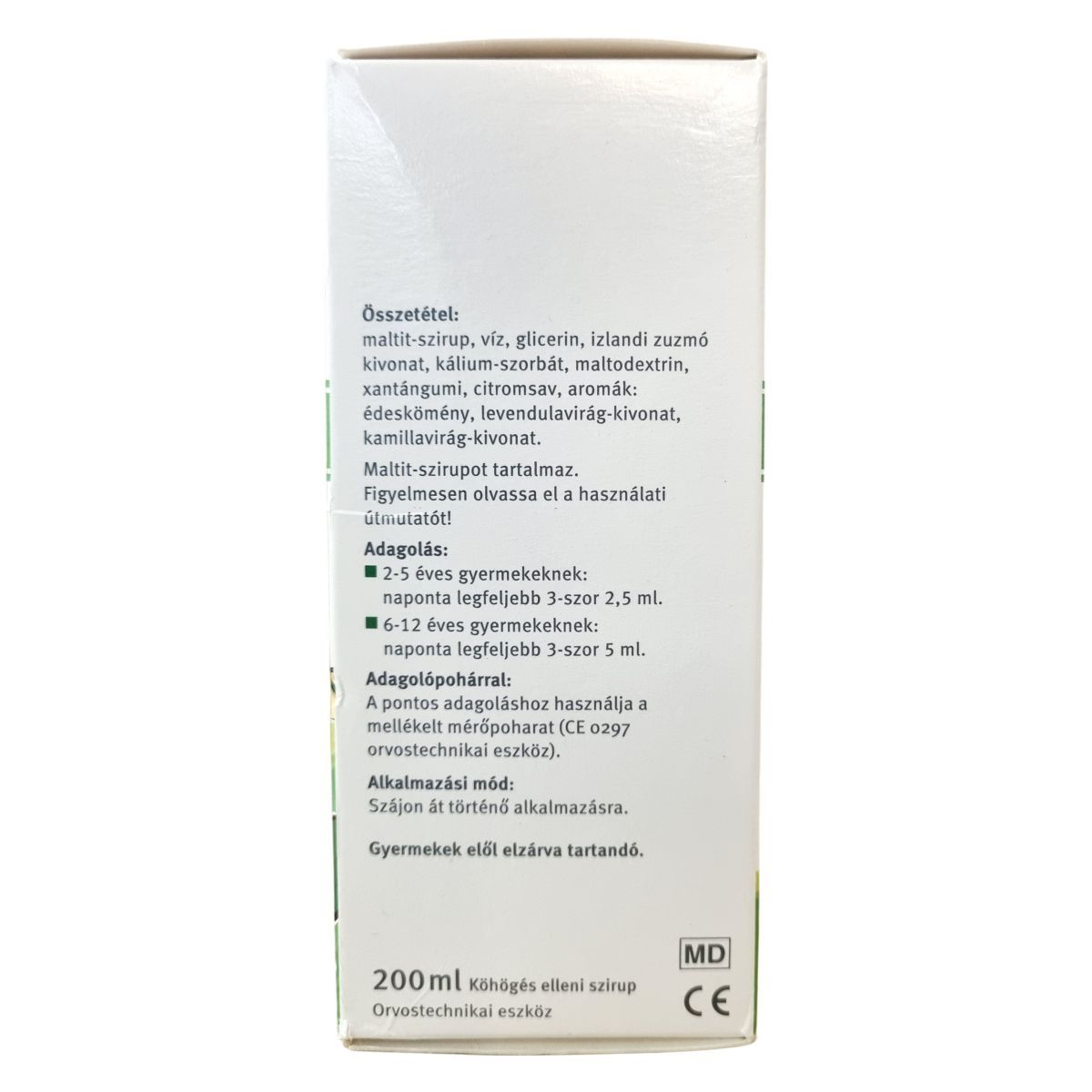 maltit-szirup, víz, glicerin, izlandi zuzmó kivonat, kálium-szorbát, maltodextrin, xantángumi, citromsav, aromák: édeskömény, levendulavirág-kivonat, kamillavirág-kivonat.