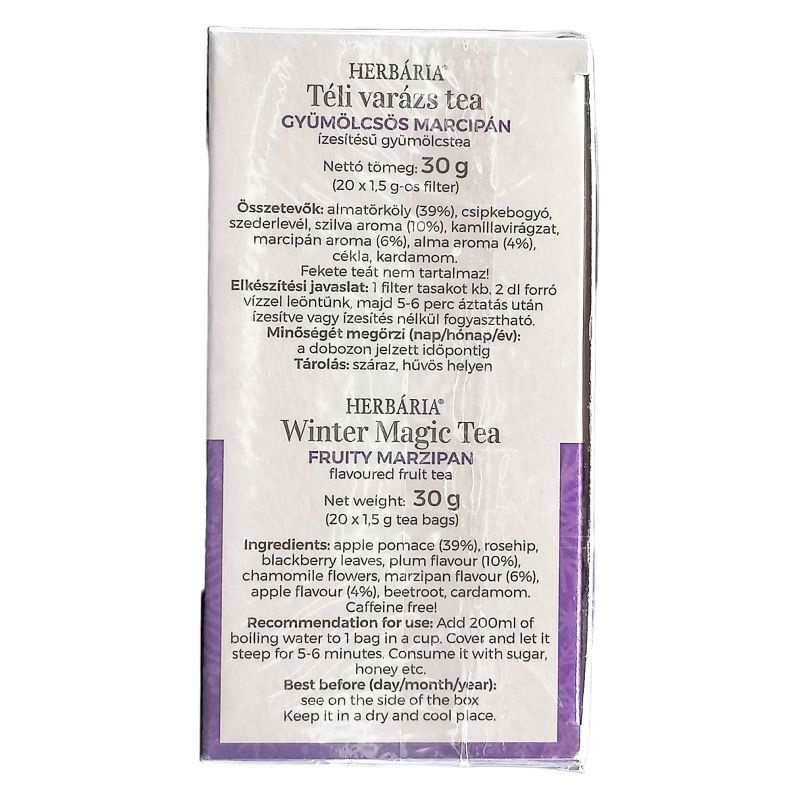 Ez a tea nemcsak ízletes, hanem számos jótékony hatással is bír. A gyümölcsökben található vitaminok és ásványi anyagok hozzájárulnak az immunrendszer erősítéséhez, míg a meleg tea segít a megfázásos tünetek enyhítésében. A marcipán íz pedig egy kis édességet csempész a mindennapokba, így a tea ideális választás lehet egy fárasztó nap végén, vagy akár egy baráti összejövetelen is. A Herbária téli varázs gyümölcs-marcipán ízű tea tökéletesen alkalmas arra, hogy megosszuk másokkal, vagy egyszerűen csak élvezzük a saját társaságunkban.