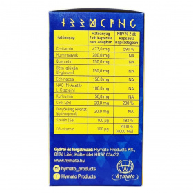 Az Immun Pro Caps egy multifunkcionális étrend-kiegészítő kapszula, amely C-vitamint, huminsavakat, növényi kivonatokat és ásványi anyagokat tartalmaz. Emellett quercetint, béta-glükánt, echinaceát, NAC-t, kurkumint, fenyőkéreg kivonatot és szelént is magában foglal. Ezek az összetevők hozzájárulhatnak az immunrendszer normál működéséhez, továbbá támogathatják a szervezet antioxidáns kapacitásának fenntartását. A C-vitamin például segíthet a fáradtság és kimerültség csökkentésében, valamint hozzájárulhat az energia szintjének és vitalitás fenntartásához. Quercetin további támogatást nyújthat az egészséges szervezet fenntartásában. A termék vegán, GMO-mentes, cukor- és laktózmentes, tartósítószer- és édesítőszermentes, ezáltal széles fogyasztói kör számára alkalmas. Az ajánlott napi adag két kapszula, amelyet bő folyadékkal javasolt bevenni. Tárolása során ügyelni kell a fénytől és hőtől való védelemre, illetve a gyermekektől való elzárásra.