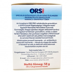 Az Innopharm ORS PRO rehidratációs granulátum a WHO/Unicef ajánlása alapján készített ásványi anyagokat tartalmazó termék, amely a vízben történő feloldás után megfelel az előírt elektrolit sók pótlási mennyiségének és ozmolaritásnak. A termék alkalmazása javasolt hasmenés, például antibiotikum asszociált hasmenés, hányás és magas láz esetén, mivel elektrolit tartalmának köszönhetően hozzájárulhat az elektrolit-háztartás helyreállításához. A granulátum enyhén sós ízű, narancs-grapefruit ízesítésű, és 10 db tasak kiszerelésben érhető el. A Saccharomyces cerevisiae var. boulardii élőflórait tartalmazó készítmény speciális gyógyászati célra szánt élelmiszer, amely az elektrolitok mellett probiotikus élőflórát is biztosít.