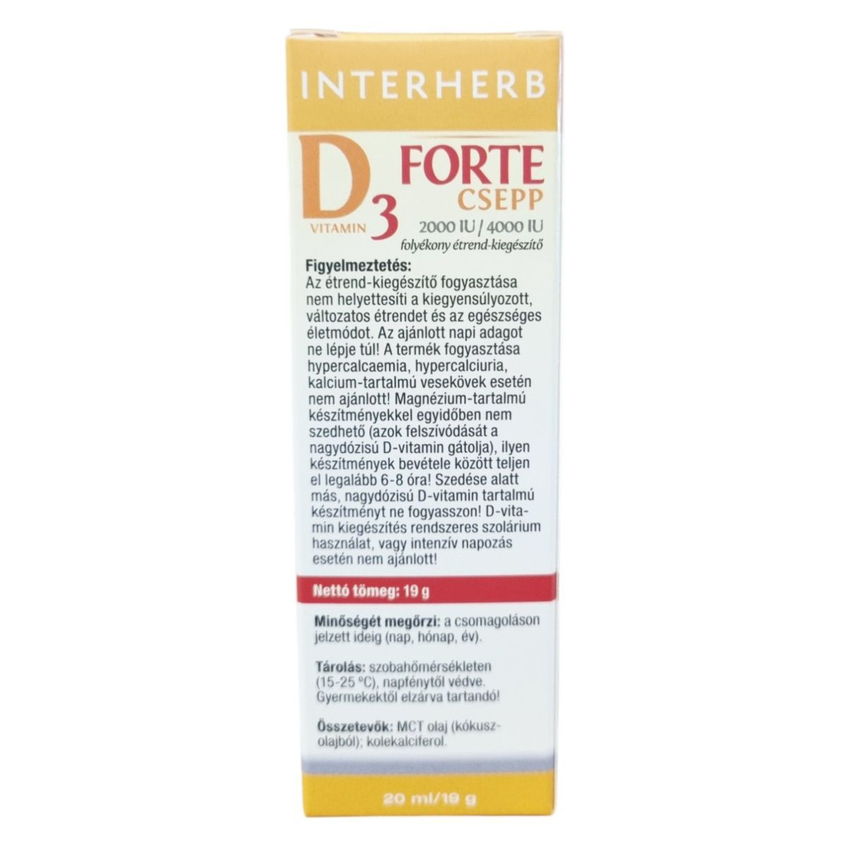 Az étrend-kiegészítő fogyasztása nem helyettesíti a kiegyensúlyozott, változatos étrendet és az egészséges életmódot. Az ajánlott napi adagot ne lépje túl! A termék fogyasztása hypercalcaemia, hypercalciuria, kalcium-tartalmú vesekövek esetén nem ajánlott! Magnézium-tartalmú készítményekkel egyidejűben nem szedhető, ilyen készítmények bevétele között teljen el legalább 6-8 óra! Szedése alatt más, nagy dózisú D-vitamin tartalmú készítményt ne fogyasszon! D-vitamin kiegészítés rendszeres szolárium használat, vagy intenzív napozás esetén nem ajánlott!