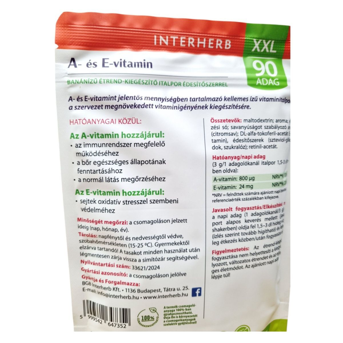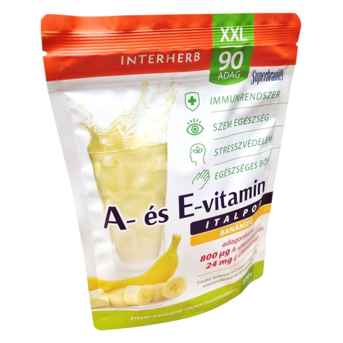 Az INTERHERB XXL banánízű italpor jelentős mennyiségű A- és E-vitamint tartalmazhat, amelyek hozzájárulhatnak az immunrendszer támogatásához, a bőr egészségéhez és a sejtek védelméhez.