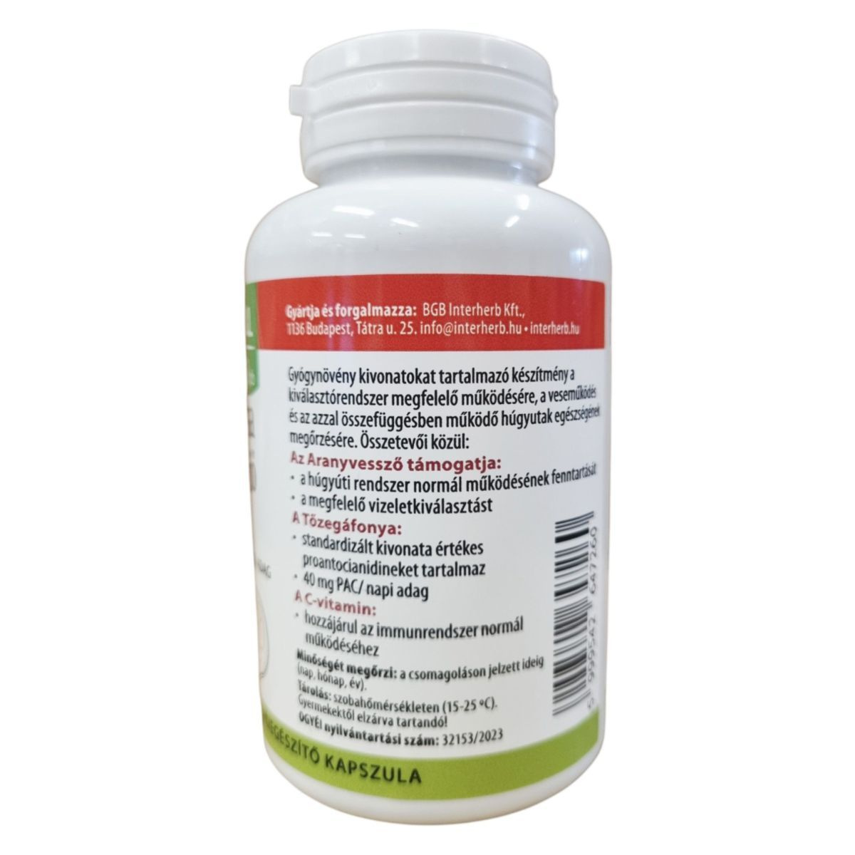 Az INTERHERB Tőzegáfonya Aranyvessző + C-VITAMIN étrend-kiegészítő kapszula a húgyutak normál működésének fenntartását támogathatja. A tőzegáfonya standardizált kivonata értékes proantocianidineket tartalmaz, míg az aranyvessző hozzájárulhat a megfelelő vizeletkiválasztáshoz. A C-vitamin az immunrendszer normál működéséhez járulhat hozzá. A termék 90 kapszulát tartalmaz, amely 45 napra elegendő, ha az ajánlott napi 2 kapszulás adagolást követjük.