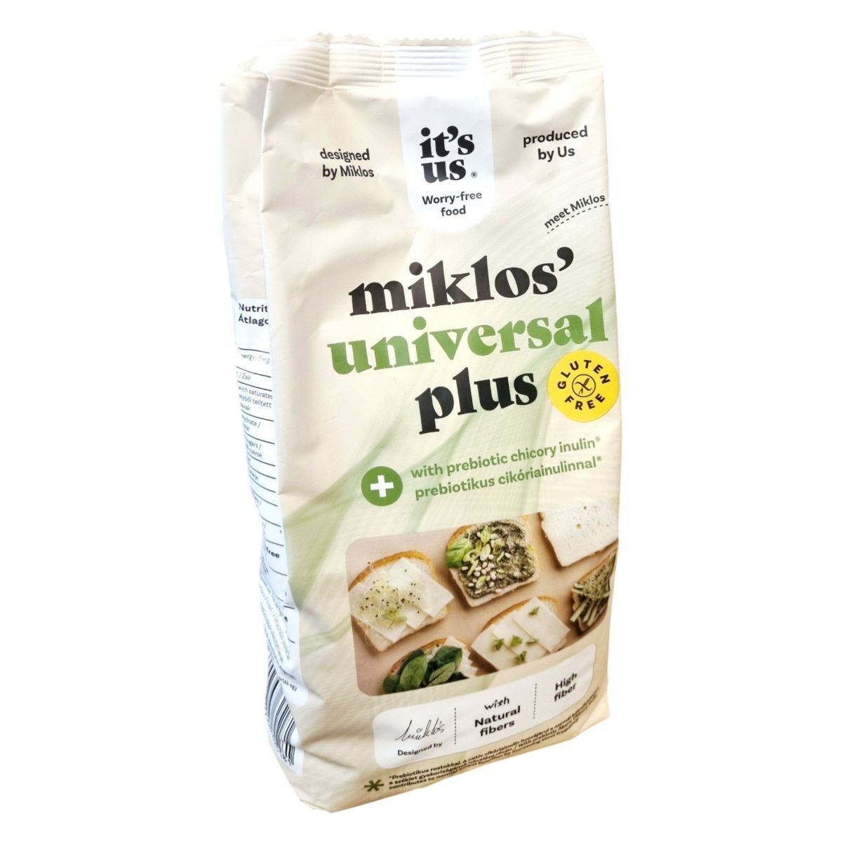 A Miklos’ Universal Plus lisztkeverék prebiotikus cikóriainulinnal készült, amely természetes rostforrásként hozzájárulhat az egészséges emésztéshez és a normál bélműködéshez. Sokoldalúan felhasználható kenyerekhez, péksüteményekhez és palacsintákhoz, miközben gluténmentes, szójamentes, búzamentes és laktózmentes összetételével a mentes étrendet követők számára is ideális választás. Magas rosttartalmának köszönhetően támogatja a kiegyensúlyozott táplálkozást, a tudatos életmódhoz illeszkedő, természetes alternatíva.