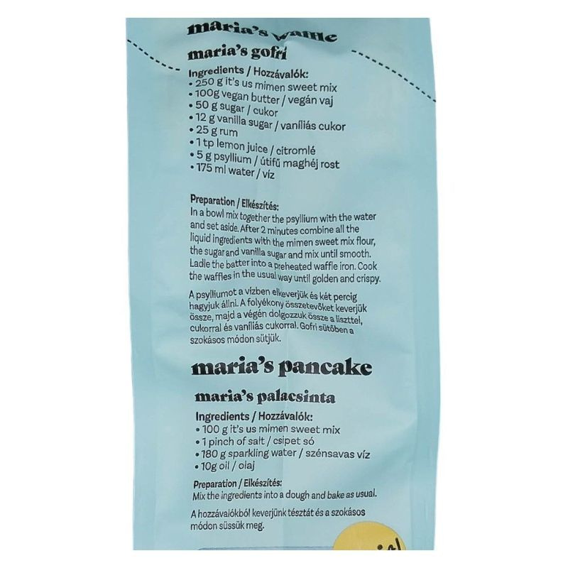 A keverék tartalmazza a legfontosabb összetevőket, mint a búzaliszt, sütőpor és egyéb fűszerek, amelyek együtt biztosítják a palacsinták könnyű és ízletes állagát. Az elkészítése rendkívül egyszerű: csak víz vagy tej hozzáadása szükséges, és már kész is a tészta. Gyorsan és könnyedén süthet ki egy ízletes reggelit, vagy készíthet desszertet a családnak.
