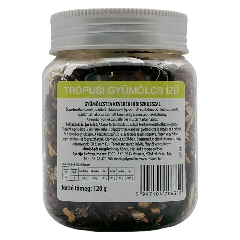 Fedezd fel a trópusi gyümölcsök ízét egy különleges gyümölcsteában! A 120 g-os kiszerelés elegendő körülbelül 30 csésze ízletes teához, melyet forrón vagy jegesen is élvezhetsz. Rendelésed 20.000 Ft felett ingyenesen szállítjuk!