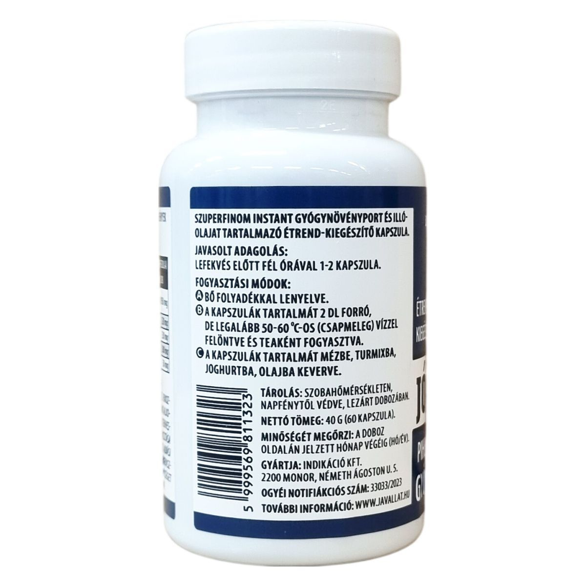 A termék szuperfinom instant gyógynövénypor és illóolajat tartalmazó étrend-kiegészítő kapszula, amely elsősorban lefekvés előtt, bő folyadékkal vagy teaként fogyasztható, akár mézbe, turmixba, joghurtba vagy olajba keverve. Az összetevők között található valerianagyökér, galagonya virágos hajtásvég, orvosi citromfű levél és levendulaolaj, melyek elősegíthetik az elalvást és hozzájárulhatnak a nyugodt éjszakai pihenéshez. Fontos, hogy a termék fogyasztása nem helyettesíti a változatos és kiegyensúlyozott étrendet és egészséges életmódot. A kapszulák zselatinból készültek. Az ajánlott fogyasztási mennyiség betartása, valamint az egyéb, központi idegrendszerre ható anyagokkal való együttes használat esetén körültekintés javasolt. A termék nem ajánlott terhesség és szoptatás alatt, továbbá 12 éves kor alatt, valamint 12-18 éves korban vagy alvási apnoé esetén csökkentett mennyiség javasolt.
