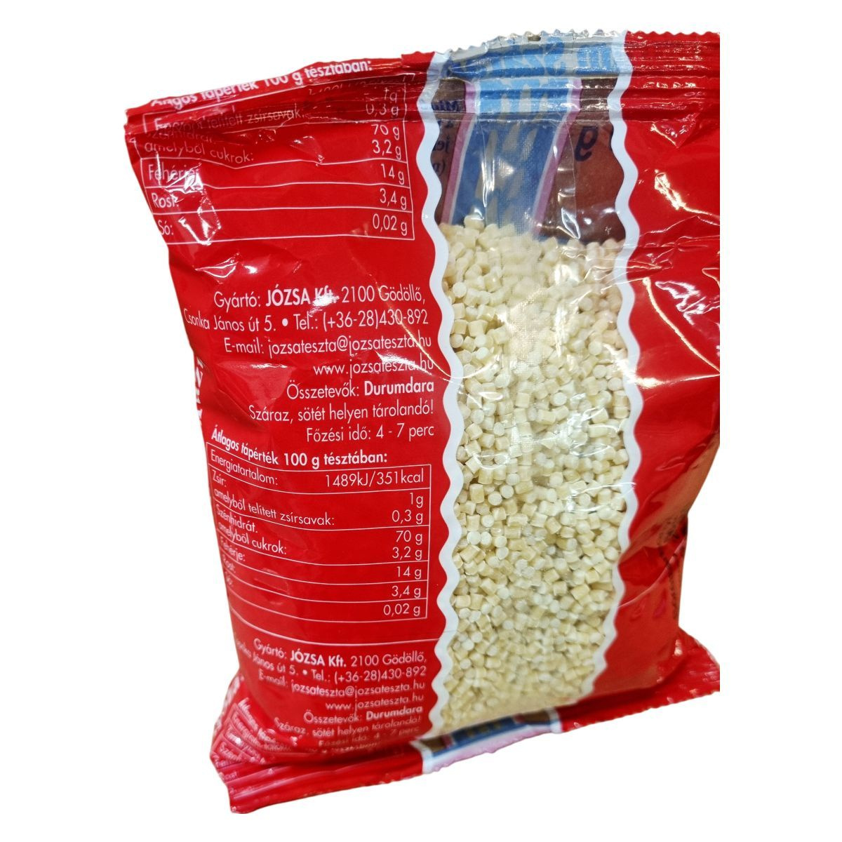 A JÓZSA Durum Száraztészta egy hagyományos minőségű tészta, melynek tasakján feltüntetett időpontig megőrzi minőségét. Ideális választás mindennapi konyhai felhasználásra, egyszerű elkészítéssel és kiegyensúlyozott tápértékekkel rendelkezik.
