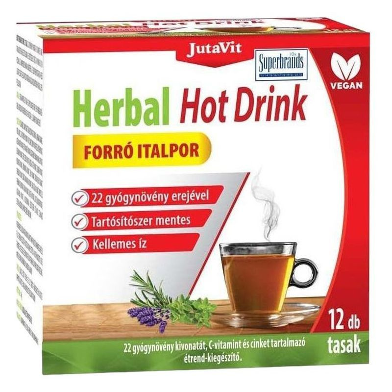 22 gyógynövény kivonatát, C-vitamint és cinket tartalmazó forró italpor cukorral és édesítőszerrel. 12 praktikus tasak, amit forró vízben kell feloldani és kihülés után, de még melegen fogyasztani.