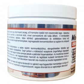 Mio-inozitol tartalmú étrend-kiegészítő készítmény. Az inozitol (B8-vitamin) egy vitaminszerű anyag, a B-komplex család nem esszenciális tagja – klasszikus értelemben nem sorolható a vitaminok közé, mivel szervezetünk elő tudja állítani. A természetben leginkább gyümölcsökben, babban, teljes kiőrlésű gabonafélékben és diófélékben fordul elő. Megtalálható a szervezetünk sejtmembránjaiban, legmagasabb koncentrációban az agyban és a központi idegrendszerben. A mio-inozitol nélkülözhetetlen a sejtek közötti kommunikációhoz, elengedhetetlen többféle agyi jelzőrendszer megfelelő működéséhez. Segít javítani a különböző receptorok (ingerfelfogó idegvégek) érzékenységét – emiatt nagyon fontos szerepet játszik a jelátviteli folyamatokban. Az inozitolnak összesen 9 különböző formája van, a két leggyakrabban használt és legtöbbet kutatott természetes forma a mio-inozitol és a d-kiro-inozitol. A termékünkben használt mio-inozitol az inozitol legstabilabb formája. Nettó tömeg: 200 g. 100 adag. Vonalkód: 5999887075438.