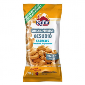 Só és olaj felhasználása nélkül, szárazon pörkölt kesudió védőgázas csomagolásban.