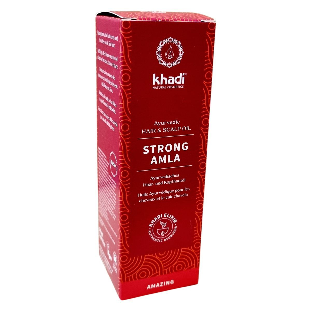 A khadi STRONG AMLA Ayurvédikus hajolaj 50 ml kiszerelésben kapható, német gyártású natúrkozmetikum, amely az Ayurveda hagyományos tudományán alapul. Az Amla kivonat az olaj antioxidáns, anti-aging hatásáról ismert, mely frissíti és regenerálja a hajszálakat és a fejbőrt. A Bhringaraj és Brahmi hatóanyagok erősítik a hajgyökereket, serkentik a haj növekedését, ezáltal támogatva az egészséges, erős haj kialakulását, különösen gyenge vagy vékony haj esetén. A termék összetevőinek többsége ökológiai gazdálkodásból származik, valamint a khadi egyedi, természetes illóolajkompozíciójának köszönhetően friss és kellemes illatot biztosít. A terméket vegán, natúrkozmetikumként minősítették, megfelel az ökocímkék kritériumainak, így környezettudatos választást jelent hajápolásban. Használata rendszeresen ajánlott a haj egészségének megőrzésére. A terméket gyermekek elől védeni kell, és a szemmel való közvetlen érintkezéstől óvni kell.