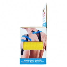 Pamutból készült, légáteresztő, vízálló, elasztikusságában az emberi bőrhöz hasonló, hosszúságában rugalmas ragasztószalag. Sárga színben.