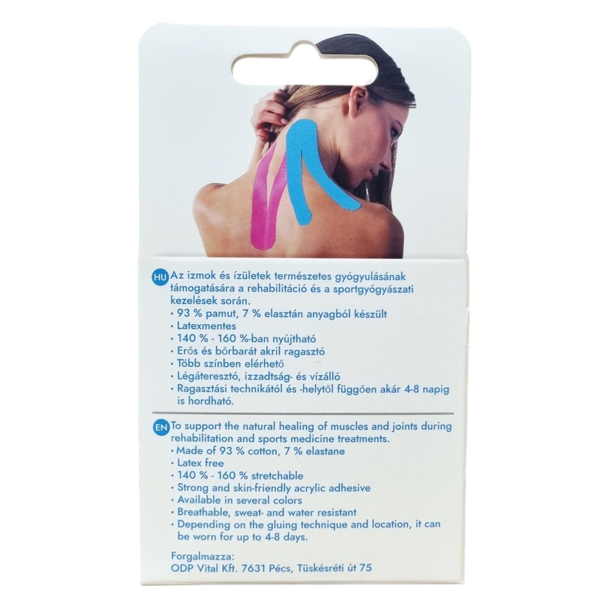 A KINESOmed kineziológiai szalag erős, bőrbarát akril ragasztóval rendelkezik, és 140-160%-ban nyújtható. Légáteresztő, izzadság- és vízálló tulajdonságú, amely lehetővé teszi a ragasztott felület akár 4-8 napos viselését a ragasztási technikától és helytől függően. Több színben elérhető, így alkalmazkodik a felhasználó igényeihez, miközben sport és szabadidős tevékenységek során is hatékony támogatást nyújt.