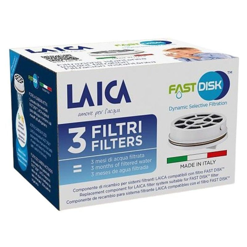 Az aktívszén mikroszálak technológiájának köszönhetően javítja a víz ízét, jelentősen csökkenti a csapvízben a klór mennyiségét, emellett pedig megtartja a test számára hasznos ásványi anyagokat (kalcium, magnézium) melyek a vízben természetesen jelen vannak. A FAST DISK LAICA szűrési kapacitása 120L/1 hónap. LAICA Flow'n go és LAICA GlaSSmart üveg vízszűrő palackokhoz és myLAICA kulacsokhoz.Egyéb általános tudnivalók