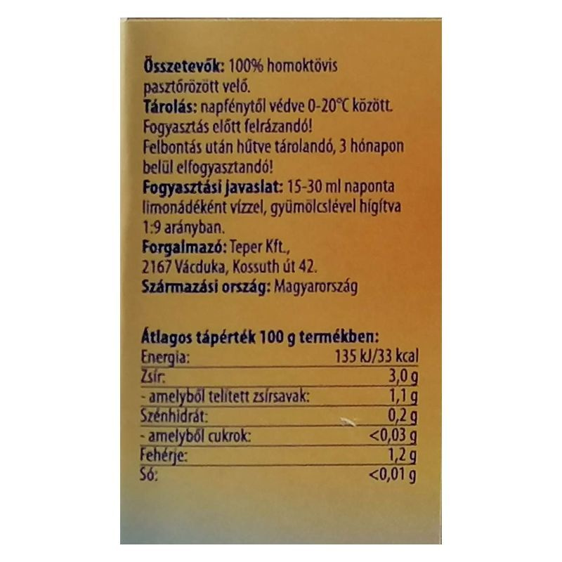 Kizárólag tiszta homoktövisbogyó húsból nyert natúr homoktövis velő és értékes homoktövis húsolaj egyben, mag és héj nélkül. A homoktövislé minden hozzáadott anyagtól mentes.