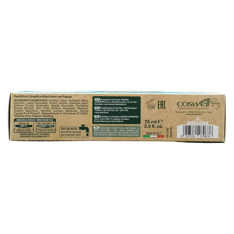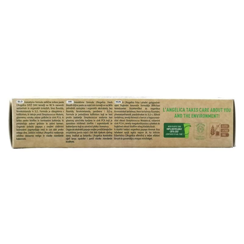 Nem tartalmaz fluoridot, phenxyethanolt, parabéneket és SLS-t. Xilitolt tartalmaz, amely felveszi a harcot a fogszuvasodást okozó Streptococcus Mutans-al, valamint cink PCA-t, amely megakadályozza a plakkot és fogkövet okozó biofilm réteg kialakulását. A bio papaya kivonat egész nap friss és kellemes leheletet biztosít.