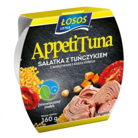 Tonhalsaláta zöldségekkel és kuszkusszal.
