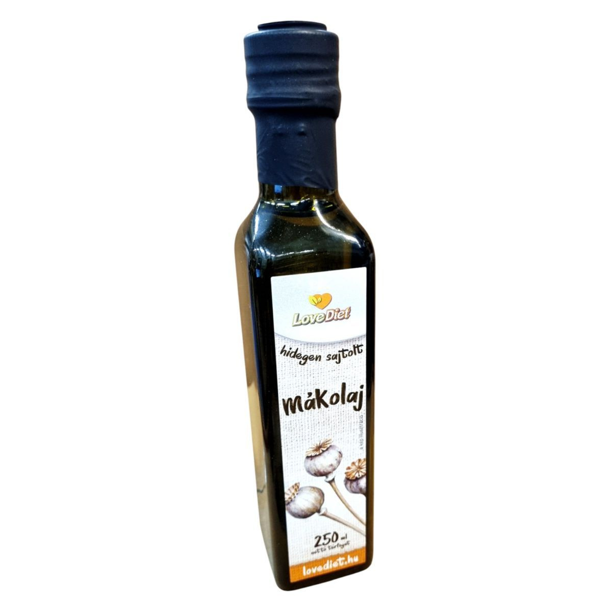 A LoveDiet hidegen sajtolt mákolaj egy 100% tisztaságú mákolaj, amely Magyarországról származik. Kiválóan alkalmas salátákhoz és desszertekhez, de sütésre és főzésre kevésbé javasolt, mivel nem jól hevíthető. A termék gluténmentes, de nyomokban földimogyorót és szezámmagot tartalmazhat. Felbontás után 45 napon belül felhasználandó. Tárolása száraz, hűvös, fénytől védett helyen ajánlott. A termék esetleges üledékessége természetes jelenség.