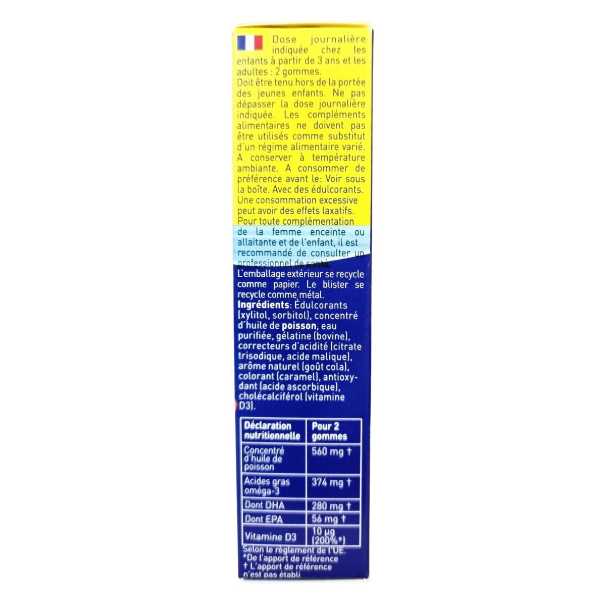 Möller’s Omega-3 halacska gumivitamin étrend-kiegészítő gyerekeknek D-vitaminnal, kóla ízesítéssel. A termék DHA-t tartalmaz, amely hozzájárul az agy és a látás normál működéséhez. A kedvező hatás eléréséhez napi min. 250 mg DHA szükséges. A D-vitamin hozzájárul az immunrendszer normál működéséhez, valamint a gyermekek csontozatának normál növekedéséhez és fejlődéséhez.