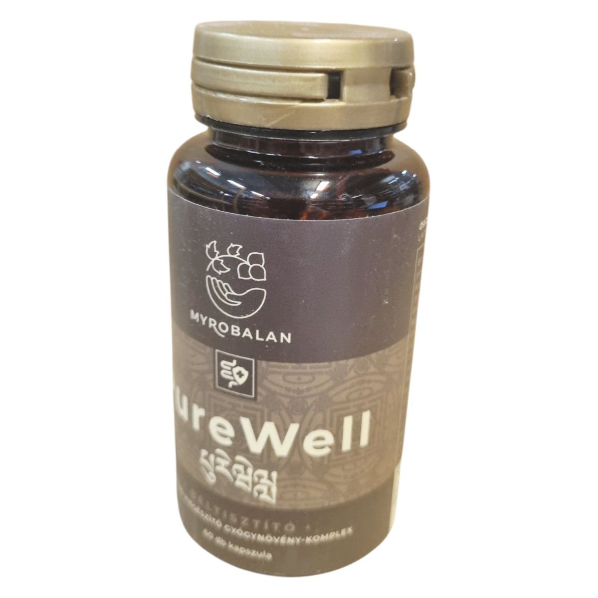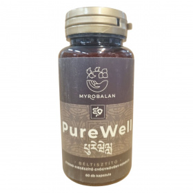 A PureWell bél tisztító étrend-kiegészítő gyógynövény-komplex, amely különböző növényi összetevőket tartalmazhat, mint például a bibhitaki, indiai egres és kínai rebarbara, amelyek hozzájárulhatnak az emésztőrendszer támogatásához.