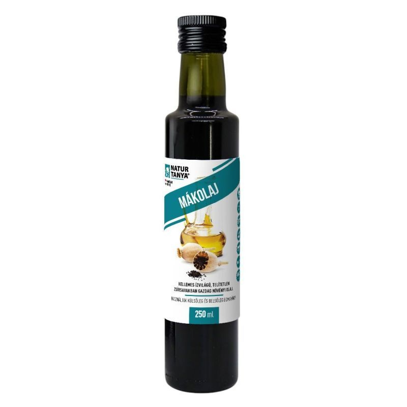 A Natur Tanya mákolaj adalékanyagmentes, világossárga színű, teljesen szagtalan és meglehetősen kellemes, édeskés-mandulás ízű olaj.