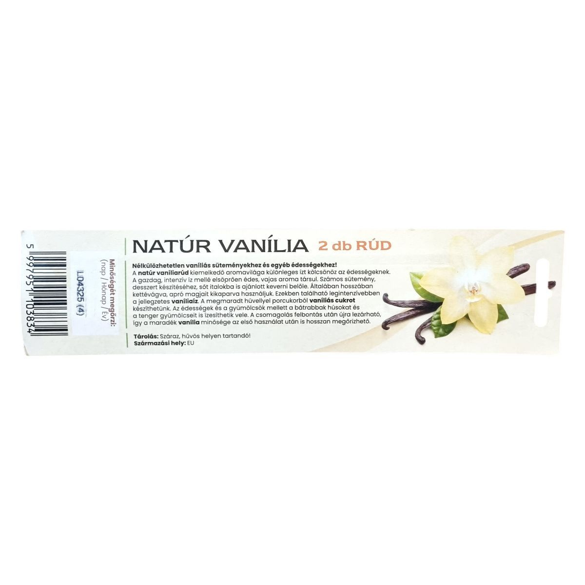 A natúr vaníliarúd kiemelkedő aromája és vajas, édes illata miatt nélkülözhetetlen vaníliás süteményekhez és egyéb édességekhez. Számos desszerthez, valamint italokhoz is ajánlott, maradékának felhasználásával pedig vaníliás cukor készíthető. A csomagolás felbontás után újra lezárható, így hosszú ideig megőrizhető a minőség. A termék EU-ból származik.
