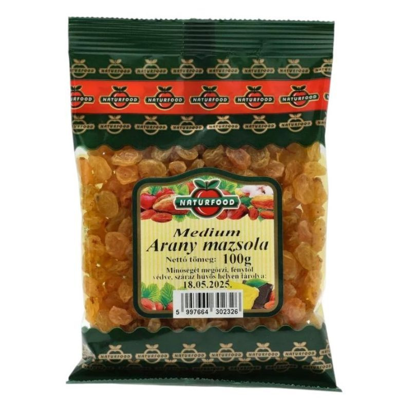 A Naturfood Medium Arany Mazsola egy ízletes és tápláló aszalt gyümölcs, amely kiváló választás lehet mindazok számára, akik szeretnék gazdagítani étrendjüket egy egészséges snackkel. Ez a mazsola a legjobb minőségű szőlőből készül, amelyet gondosan válogatnak és szárítanak, hogy megőrizzék természetes ízét és tápanyagtartalmát. A medium méretű mazsolák édes ízük mellett kellemesen rágós textúrával rendelkeznek, így tökéletesen alkalmasak csemegeként való fogyasztásra. A termék gluténmentes, így a gluténérzékenyek is bátran élvezhetik. A mazsola nemcsak finom, hanem tele van vitaminokkal és ásványi anyagokkal, amelyek hozzájárulnak a szervezet egészségéhez. A Naturfood Medium Arany Mazsola 100g kiszerelésben kapható, így könnyen tárolható és hordozható, ideális választás otthonra vagy útközben.
