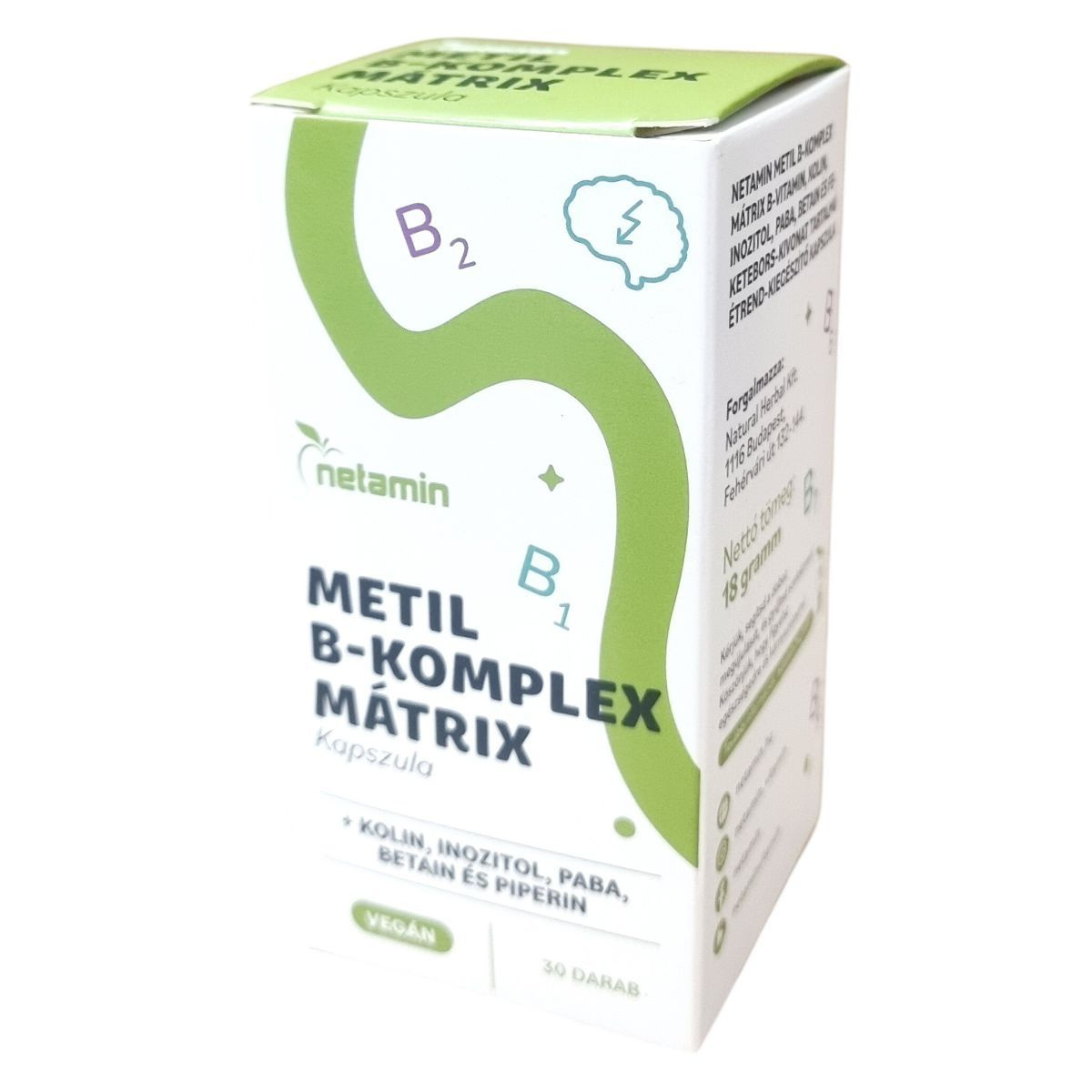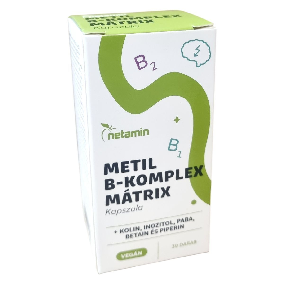 A Metil B-komplex Mátrix kapszula komplex összetétele B-vitaminokat, kolint, inozitolt, PABA-t, betaint és feketebors-kivonatot foglal magában. A termék hozzájárulhat a fáradtság és kifáradás csökkentéséhez, az immunrendszer normál működéséhez, az idegrendszer egészségéhez, valamint a normál pszichológiai funkciók fenntartásához. Támogathatja a normál homocisztein-anyagcserét, a szív normál működését és a vérképzést. A termék kapszula formában, vegán összetevőkből készül, és egy csomagolásban 30 darab található. A termék fogyasztásakor ajánlott bő folyadékot inni. A készítmény csomagolása környezetbarát, szelektív hulladékgyűjtésre alkalmas, melyet a gyártó kér az egészségtudatos és környezetbarát életmódot követő fogyasztóktól.