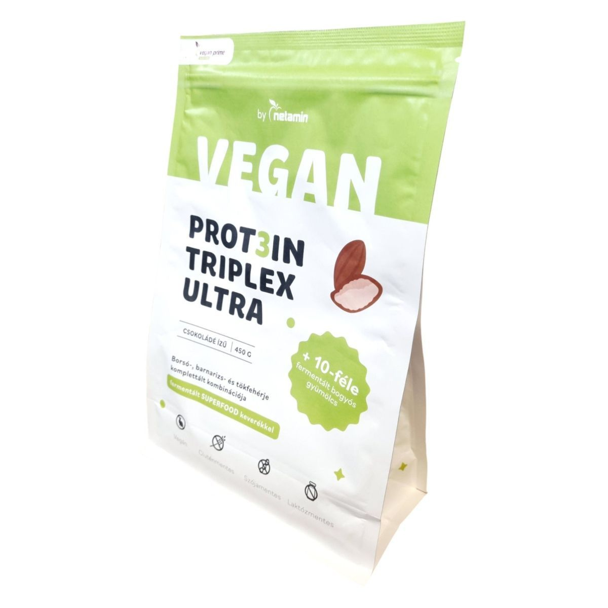 A Netamin VEGAN PROT3IN TRIPLEX ULTRA egy csokoládéízű, vegán fehérje alapú italpor, amely borsó-, barnarizs- és tökfehérje kombinációját tartalmazza. A termék 10-féle fermentált bogyós gyümölcs keverékével van kiegészítve, amely könnyen emészthető és változatosan felhasználható lehet. A termék nem tartalmaz glutént, laktózt, szóját, színezéket, tartósítószert és állati eredetű összetevőt. Az italpor tudományos alapon összeállított aminosav profillal rendelkezik, és alkalmas lehet fehérjeturmixok, smoothie-k készítésére, valamint sütéshez is felhasználható.