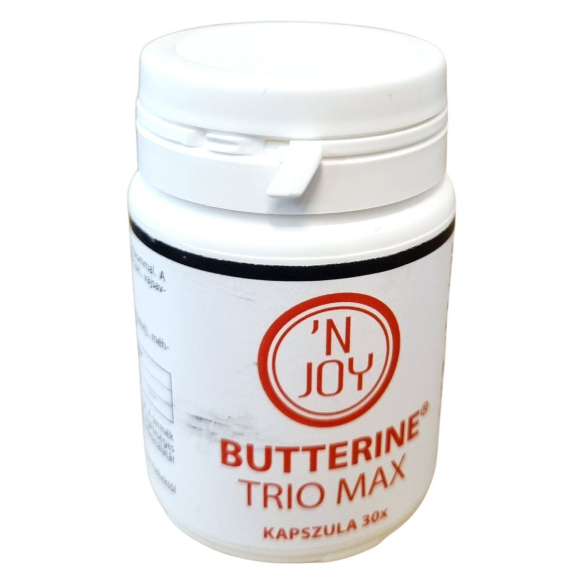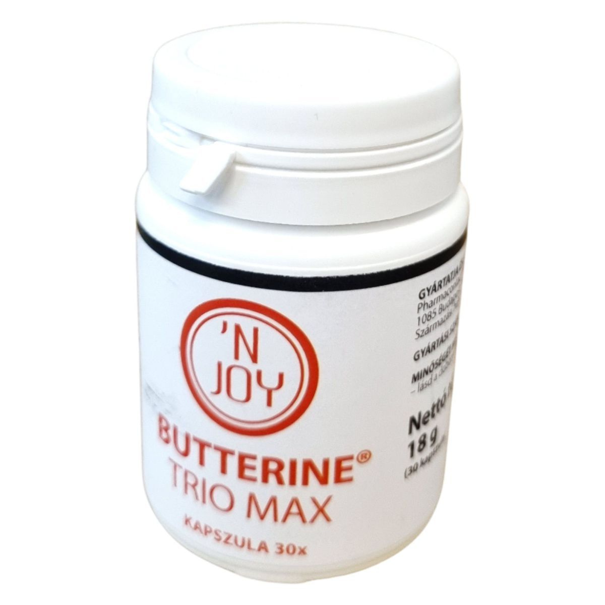 A 'N Joy Butterine Trio Max kapszula természetes eredetű tributirint tartalmaz, amely a vajban is megtalálható vajsav-triglicerid formája. A vajsav a bélrendszer egészséges működésében és a sejtek energiatermelésében játszhat szerepet. A készítmény napi 1 kapszulás adagolása egyszerűen beilleszthető a mindennapi étrendbe. A termék gondosan válogatott alapanyagokból, Magyarországon készül, 30 darab kapszulát tartalmaz, melyek 18 gramm nettó tömegűek. A kapszula fogyasztása segítheti az emésztőrendszer egyensúlyának fenntartását és hozzájárulhat a szervezet természetes védekező képességének működéséhez.