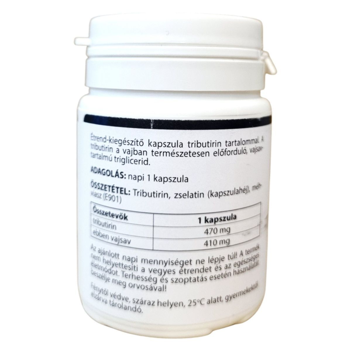 Az étrend-kiegészítő készítmény tributirin tartalmával hozzájárulhat a szervezet általános anyagcsere-folyamatainak támogatásához, a sejtek energiaellátásához és a bélflóra egészségének megőrzéséhez.