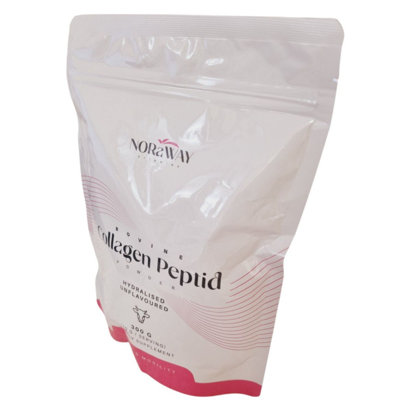 A NORaWAY BOVINE Collagen Peptid POWDER egy ízesítetlen, hidrolizált marha kollagén peptid alapú étrend-kiegészítő, amely 300 g-os kiszerelésben érhető el. A termék célja, hogy támogassa az ízületek és a mobilitás egészségét. Az ajánlott napi adag 10 g, amelyet egy adagolókanál segítségével könnyedén kimérhetünk és vízben vagy gyümölcslében feloldhatunk. A termék nem helyettesíti a vegyes étrendet és az egészséges életmódot. A csomagolás tartalmaz egy szárítószert a frissesség megőrzése érdekében, amelyet nem szabad elfogyasztani.