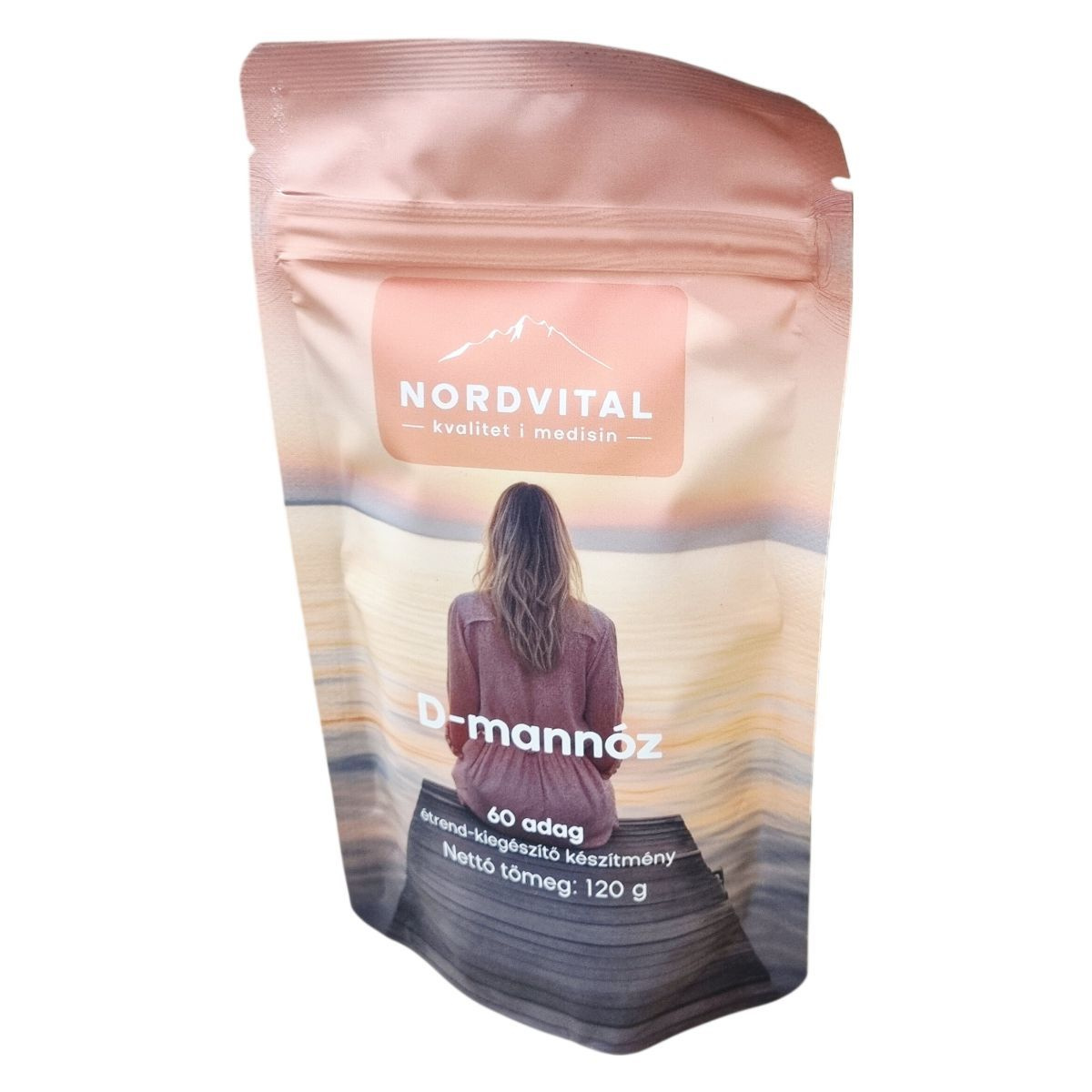 A Nordvital D-mannóz egy étrend-kiegészítő por, amely természetes D-mannózt tartalmaz. A termék 120 grammos kiszerelésben kapható, amely 60 adag port jelent. A D-mannóz természetben előforduló cukorfajta, mely többek között a fekete áfonyában és tőzegáfonyában is megtalálható. A por enyhén édes ízű, így könnyen beilleszthető a mindennapi étrendbe. A termék előállítása egy olyan üzemben történik, ahol földimogyorót, dióféléket és szezámmagot is feldolgoznak. A Nordvital D-mannóz laktóz- és gluténmentes, valamint vegán és GMO-mentes termék. A csomagolásán feltüntetett minőségmegőrzési időpontig érdemes felhasználni.