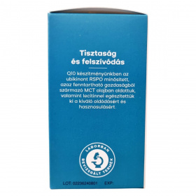 MCT olaj (RSPO minősített pálmaolajból), vegán kapszulatok (kukoricakeményítő, glicerin, tisztított víz, színezék: karamell), ubikinon (Q10), stabilizátor (napraforgóból származó lecitin)