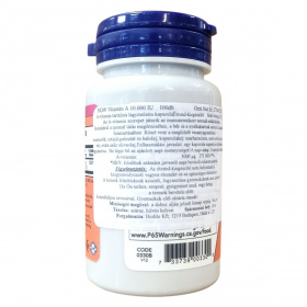 A NOW Vitamin A 10.000 IU lágyzselatin kapszula 100 db kiszerelésben érhető el. Az A-vitamin hozzájárulhat az immunrendszer megfelelő működéséhez, a normál látás fenntartásához, valamint a bőr és a nyálkahártyák egészséges állapotának megőrzéséhez. Részt vehet a megfelelő vasanyagcserében is. A termék kapszulahéja marhazselatinból készült, és tartalmaz glicerin, vizet valamint extra szűz olívaolajat. A halolajban található A-vitamin forrásként szolgál, amely természetes eredetű. A készítmény nem tartalmaz allergéneket, mint élesztő, búza, glutén, szója, kukorica, tej, tojás, kagyló vagy szezámmag, ugyanakkor a kapszula tartalmaz halat. A terméket GMP szabvány szerint gyógyszeripari tisztasági előírásoknak megfelelően állítják elő az USA-ban, ahol globálisan beszerzett alapanyagokat használnak. A palack 100% újrahasznosított műanyagból készül, és természetes színeltérések előfordulhatnak. Az ajánlott napi adag egy kapszula, mely egyszerűen beilleszthető a napi étrendbe az étkezéshez.