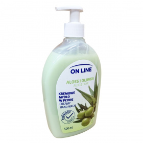 Az On Line Aloe vera & Oliva krémszappan 94%-ban természetes eredetű összetevőket tartalmazó, innovatív formula. A probiotikum aktív védőgátat képez a bőr felszínén, míg a búzafehérje ápolásával és hidratálásával járul hozzá a bőr egészségéhez. A termék bőrgyógyászok által ellenőrzött és vegán minősítésű. A folyékony krémszappan 500 ml kiszerelésben érhető el, és származási helye az Európai Unió.