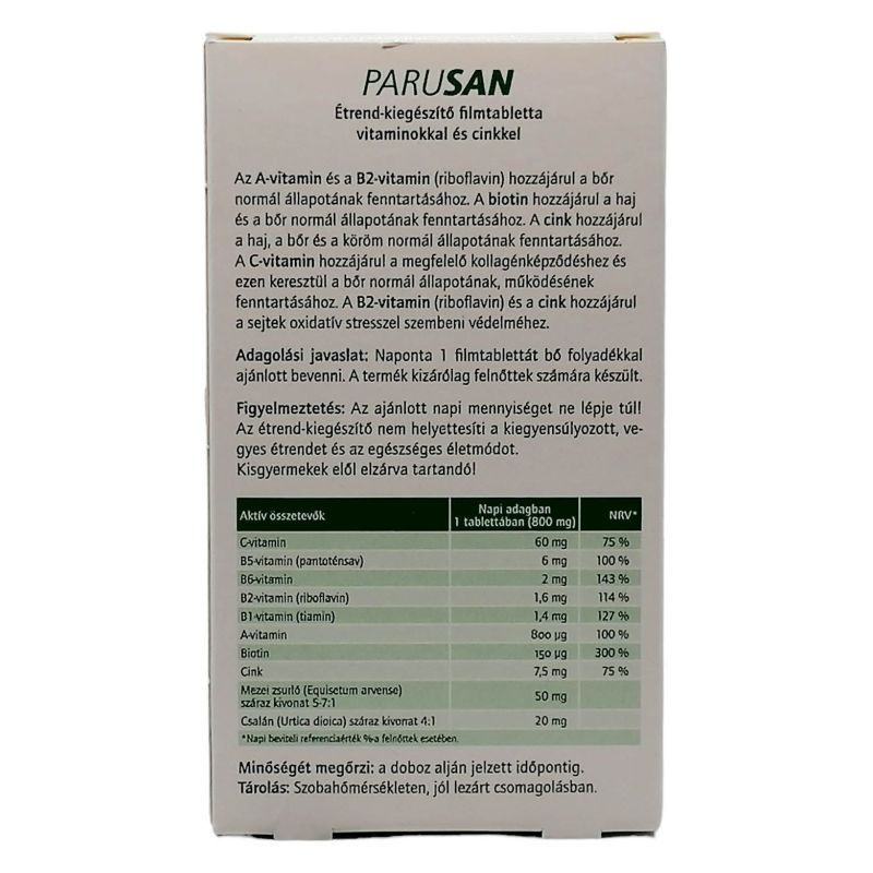 C-, B5-, B6-, B2- B1-, A-vitamin biotin és cink Az A-vitamin és a B2-vitamin (riboflavin) hozzájárul a bőr normál állapotának fenntartásához.