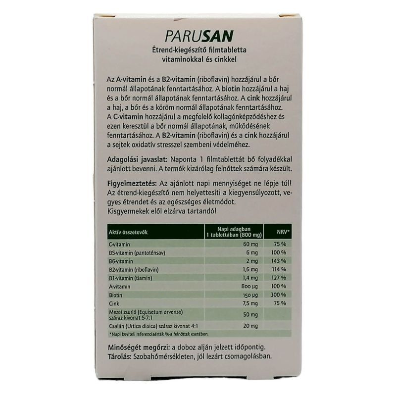 A biotin hozzájárul a haj és a bőr normál állapotának fenntartásához. A cink hozzájárul a haj, a bőr és a köröm normál állapotának fenntartásához.