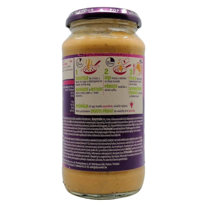 Vegetáriánusok is fogyaszthatják. Gluténmentes ÖSSZETEVŐK: Víz, Cukor, Kókuszreszelék (4%), Tejszín (tej) (4%), Krémesített kókusz (4%), Repceolaj, Módosított kukoricakeményítő, Paradicsompüré koncentrátum, Zsíros tejszín (tej) (1%) , Gyömbér püré, Fokhagyma püré, Fűszerek (1%) (fűszerek, kömény, édeskömény, kurkuma), Szárított vöröshagyma, Só, Sav (tejsav), Citromlé koncentrátum, Szárított korianderlevél. Allergéneket lásd az összetevőknél vastagon kiemelt betűkkel! Földimogyorót és dióféléket tartalmazhat. Felbontás után azonnal használja fel. Bevásárló lista 4 főre: 1 nagy karfiol vagy 400 g csirkehús Recept javaslat: 1, Szeletelje fel a húst, a halat és/vagy a zöldségeket majd kb 5 percig kevés olajon pirítsa meg. 2, Adja hozzá a mártást és kb 15 percig főzze. 3. Tálalja rizzsel vagy naan kenyérrel (currys rizs és naan).