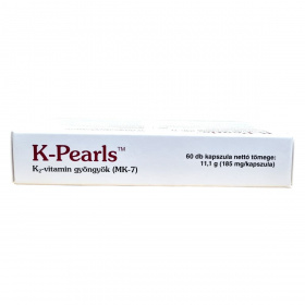 A K-Pearls™ K2-vitamin gyöngyök (MK-7) egy étrend-kiegészítő, amelyet a Pharma Nord gyárt. A termék 60 db lágyzselatin kapszulát tartalmaz, amelyek hidegsajtolással nyert olívaolajban oldott K2-vitamint tartalmaznak. A K2-vitamin hozzájárulhat az egészséges csontozat és a normál véralvadás fenntartásához. A kapszulák könnyen fogyaszthatók, akár összerágva, akár egészben lenyelve. A termék minőségét a doboz alján jelzett időpontig őrzi meg, és szobahőmérsékleten tárolandó. Fontos, hogy az ajánlott napi mennyiséget ne lépjük túl, és a termék nem helyettesíti a kiegyensúlyozott étrendet és az egészséges életmódot. Különösen figyelmet kell fordítani a terhes és szoptató anyák, valamint a gyógyszeres kezelés alatt álló egyének esetében, akiknek tanácsos orvosukkal konzultálni a termék használata előtt.