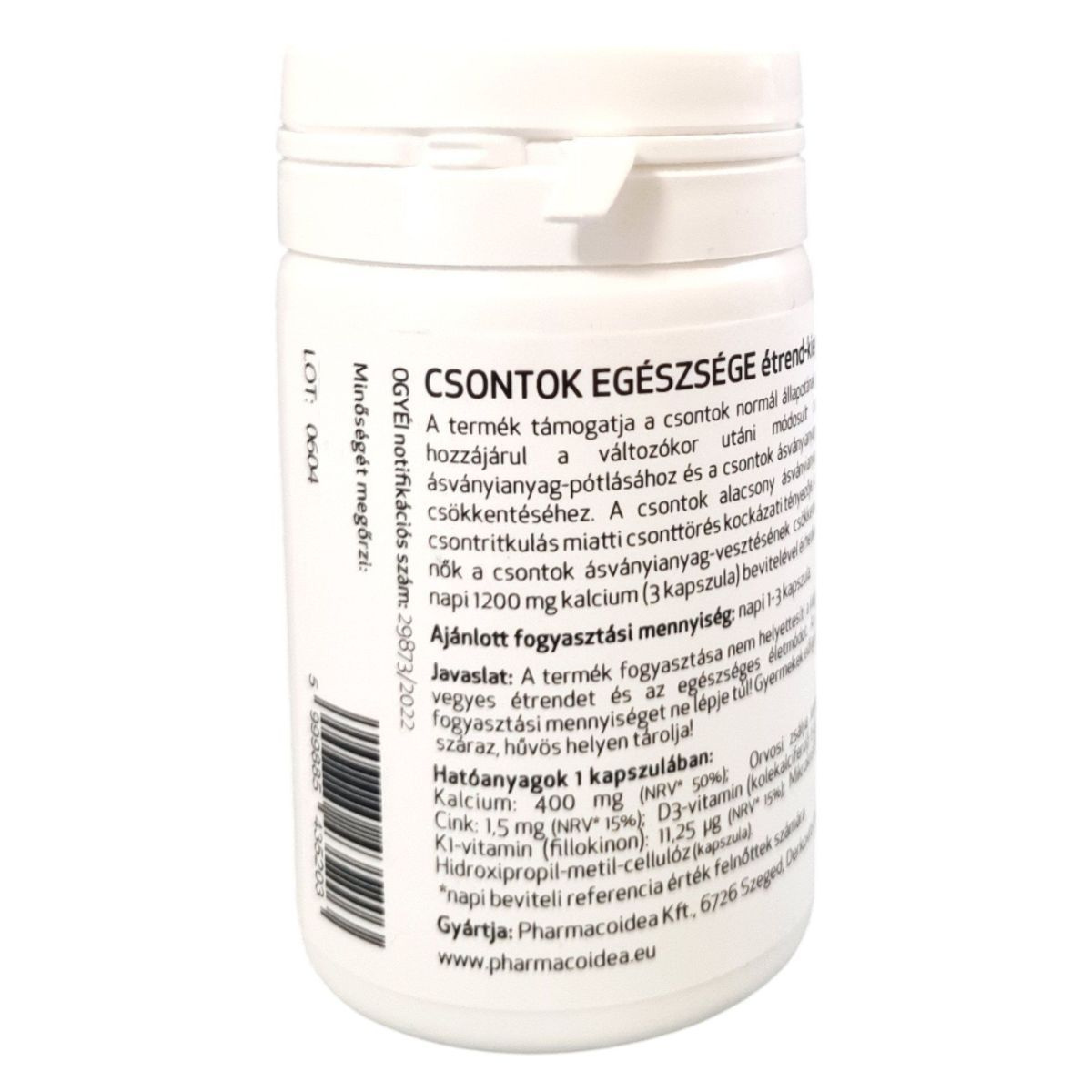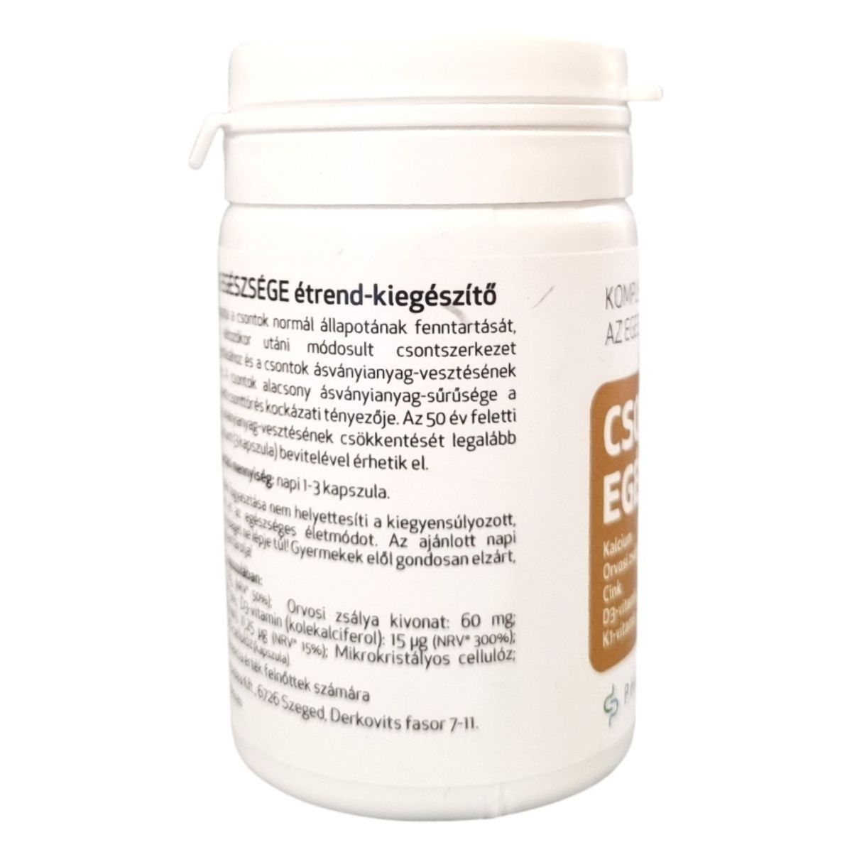 A CSONTOK EGÉSZSÉGE étrend-kiegészítő kapszula komplex összetételével támogathatja a csontok egészségét. A termék kalciumot, cinket, D3-vitamint, Kl-vitamint és orvosi zsálya kivonatot tartalmaz, amelyek hozzájárulhatnak a csontok normál állapotának fenntartásához és a változókor utáni csontszerkezet ásványianyag-pótlásához. Az 50 év feletti nők számára különösen ajánlott, mivel a csontok ásványianyag-vesztésének csökkentését legalább napi 1200 mg kalcium (3 kapszula) bevitelével érhetik el. A termék nem helyettesíti a kiegyensúlyozott étrendet és az egészséges életmódot.